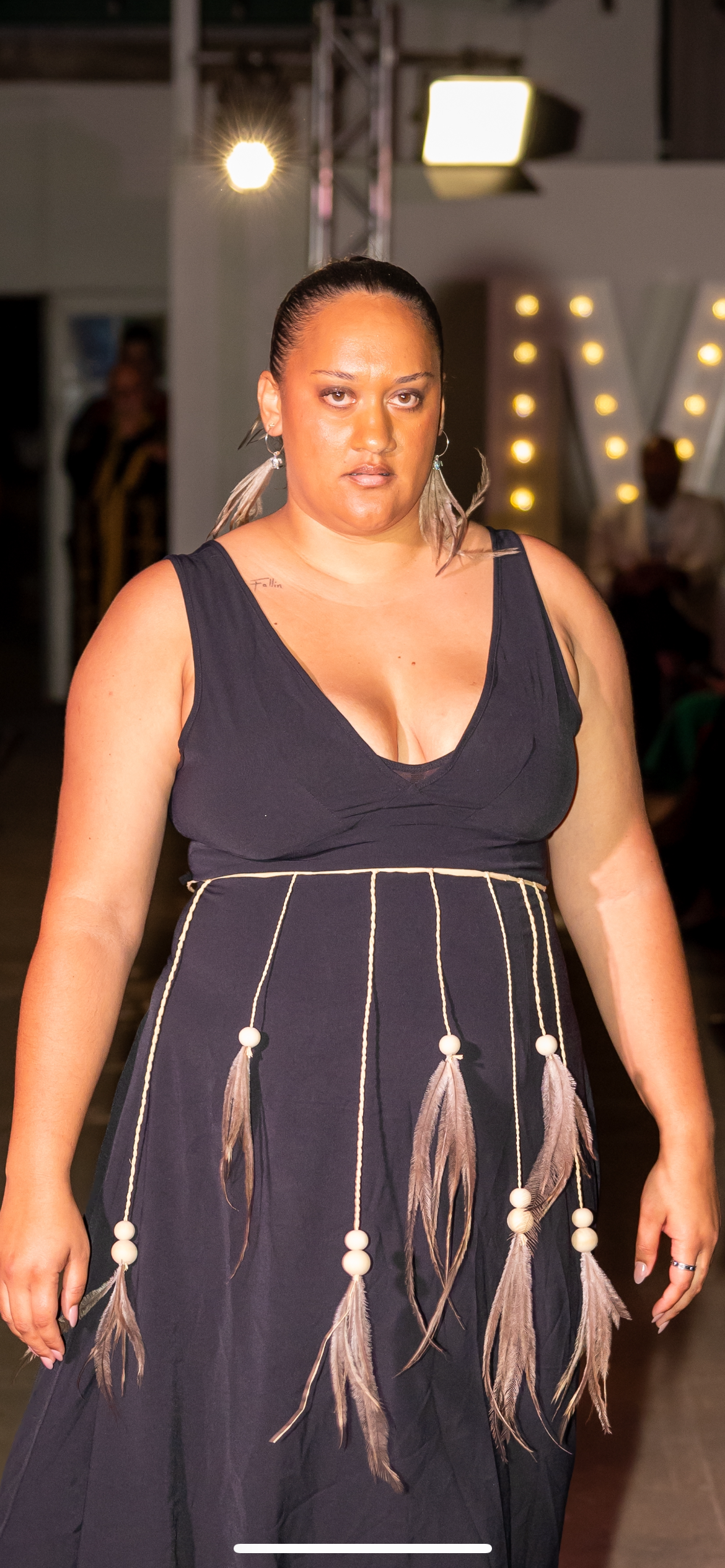 The emu holds deep cultural significance in many First Nations communities — representing spiritual strength, protection, and ancestral presence. As the feathers shift and sway with the wearer’s movement, they echo the stories carried through generations and the enduring relationship between people and land.
