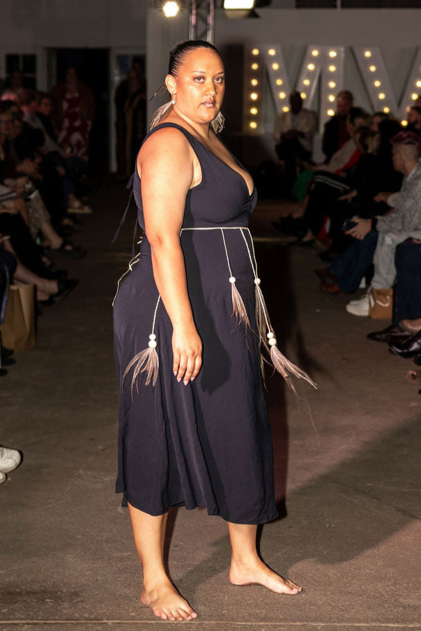 The Emu Spirit Belt is a striking, handcrafted accessory that weaves together culture, movement, and connection to Country. Featuring a slim, hand-braided cord designed to wrap gently around the waist, this piece is adorned with flowing strands of natural fibre, each finished with smooth wooden beads and ethically sourced emu feathers.